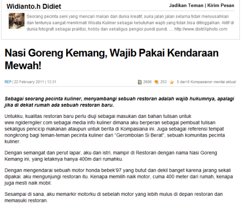 Tapi memang benar kok Pak, kalau kita pakai motor ke suatu tempat/gedung yang dianggap “mewah”. Kita seperti tidak dihargai, biasanya tempat parkirnya paling belakang atau paling pojok. Bahkan lewat lobby saja tidak boleh, karena ada tempat khusus unutk motor…. 🙂