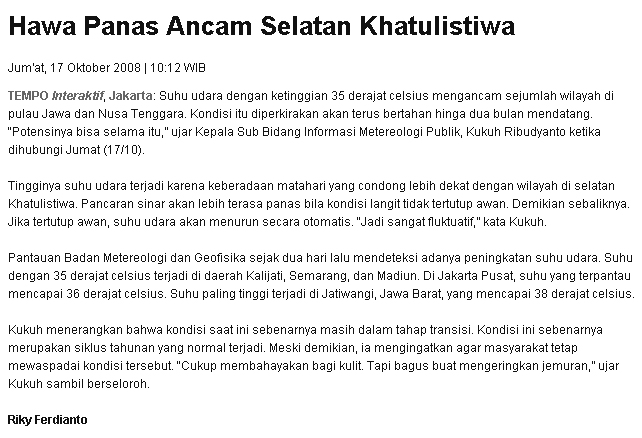Saya bukan pakar ini dan itu. Tak bisa menjawab apalagi menganalisis fenomena alam dengan lebih detail. Tapi, pagi ini saya membaca keterangan Badan Meteorologi dan Geofisika yang mengklarifikasi isu ini. « Read the rest of this entry »